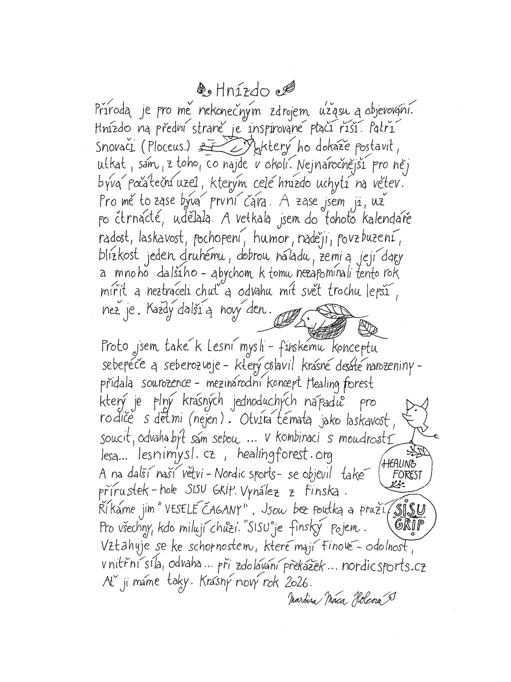 Originální nejen rodinný kalendář, který si spoluvytváříte a který Vám přináší přehled pro rodinné radosti i povinnosti. Každý měsíc má svoji vlastní stránku a dobře se používá. Budete mít na očích důležité okamžiky a události, které si do něj vlastní rukou společně zaznačíte. Nejen pro Nordic tréninky, lekce, výšlapy či víkendovky. Více o kalendáři a další tvorbě najdete na zde.